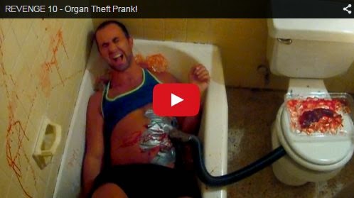 What a thing to wake up to after just watching about it on the (fake) news earlier. These pranks just get weirder and weirder. This one is a revenge prank of the organ-theft kind and the guy getting pranked doesn't seem too impress with it even after his friend told him it was a revenge prank...